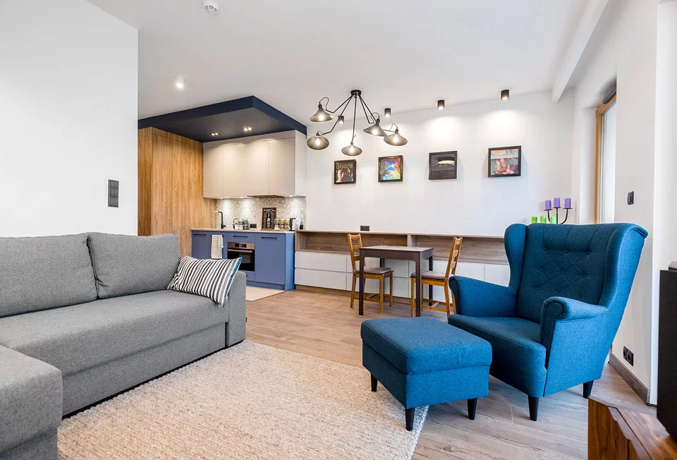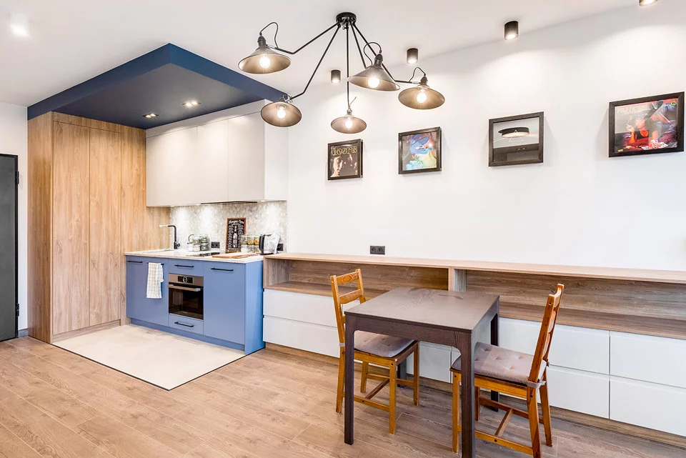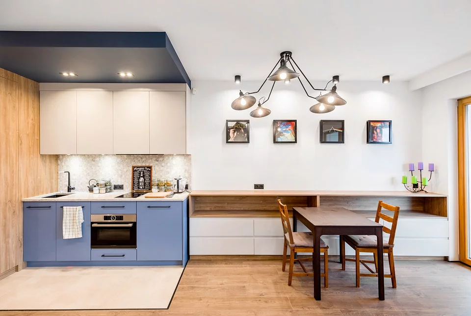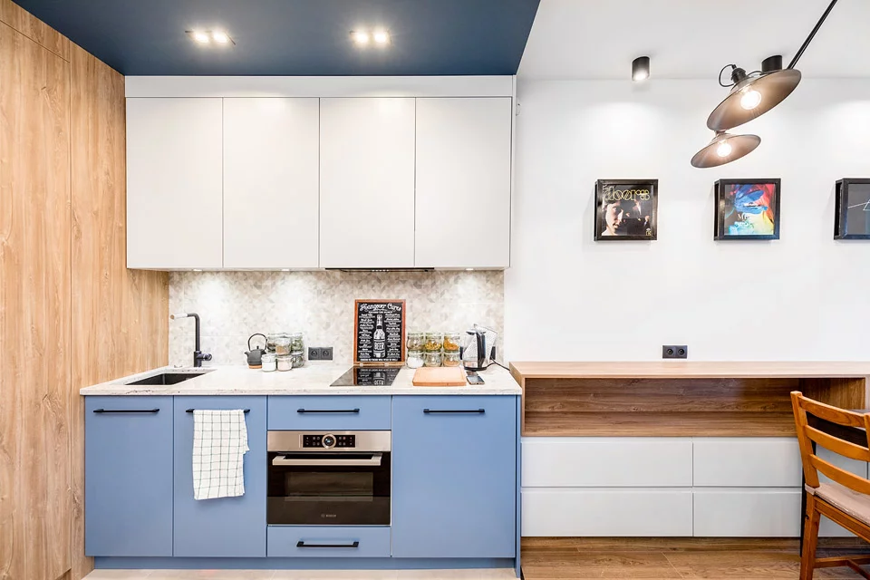 Kuchnia na wymiar: Odważny błękit i naturalne drewno